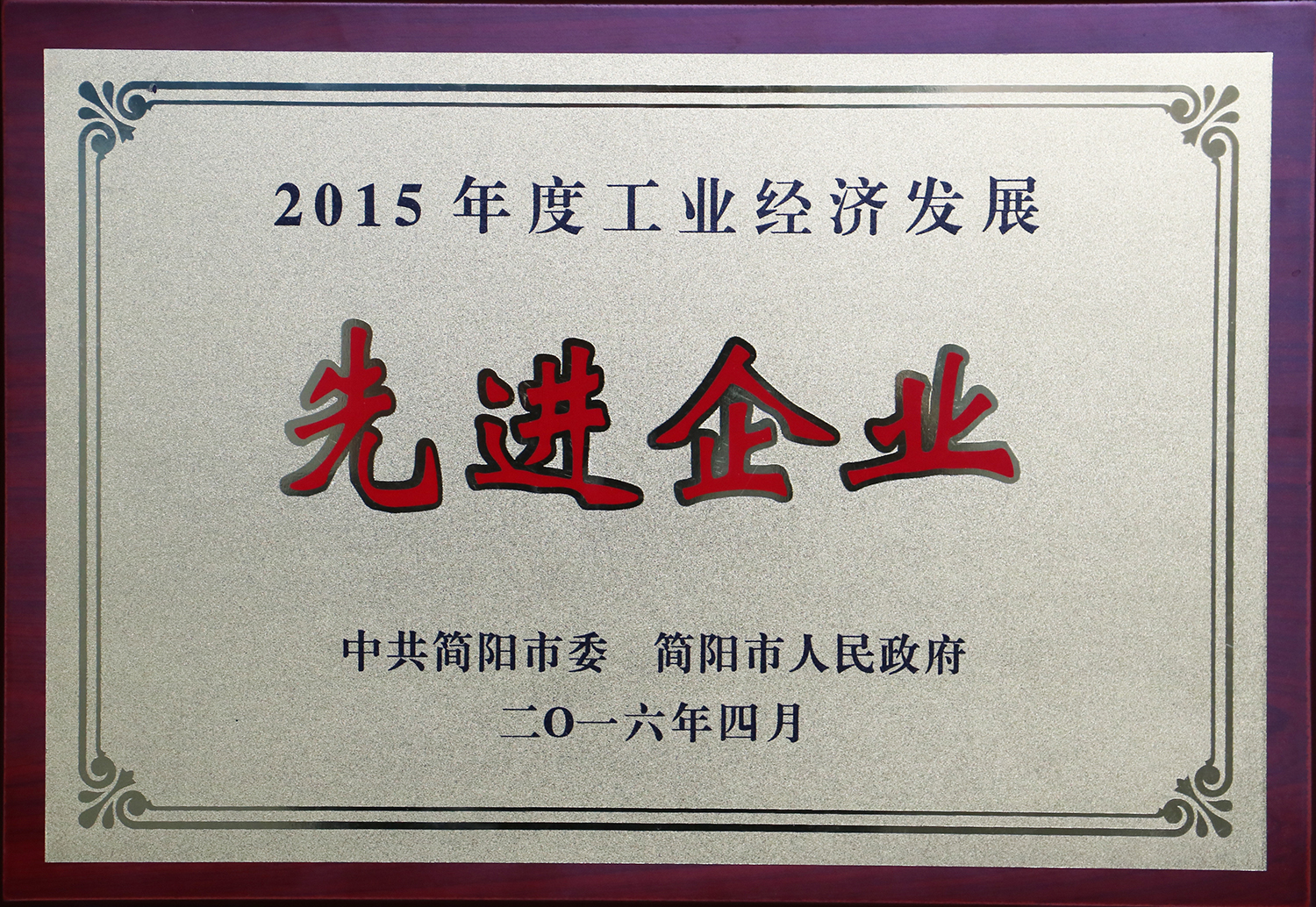 當(dāng)前位置:網(wǎng)站首頁 > 新聞資訊 > 四川國光榮獲簡陽市2015年度工業(yè)經(jīng)濟發(fā)展先進企業(yè)榮譽