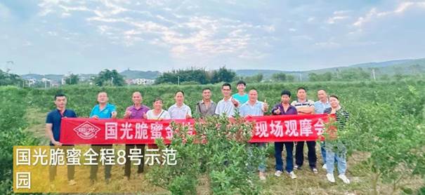6月14日,國光農(nóng)化在廣西柳州召開“國光脆蜜金桔全程調(diào)控方案8號園-階段性驗(yàn)收觀摩會”,10余名種植大戶參會,高度認(rèn)可紛紛認(rèn)購使用我司方案。國光在當(dāng)?shù)匾呀?/span>200余個(gè)脆蜜金桔全程調(diào)控方案示范園!