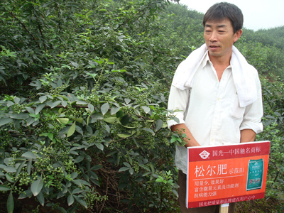 二、青花椒的施肥方式:施肥方式包括基肥和追肥,基肥以有機(jī)肥為主,追肥以速效性化學(xué)肥料為主。施肥方法以溝施、穴施為主,在樹冠投影范圍內(nèi)集中施用;瘜W(xué)肥料溝深10厘米~20厘米,有機(jī)肥料溝深20厘米~40厘米。穴施,每株樹4~6個穴,穴的直徑和深度為20厘米~40厘米。