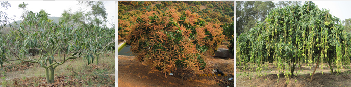 芒果修剪遵循原則為:結果母枝逐年增加,結果母枝均勻,樹體透光、光合效率最高,病蟲害發(fā)生少。