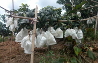 2、在第二次生理落果后,剪除影響果實發(fā)育的花梗與枝條,疏除畸形果,病蟲果及過小的敗育果,兩個果粘在一起的易拈惹蟲害,應去除一個,一穗果保留3-4個發(fā)育正常的果即可。對未結果或開花不結果的枝條可酌情短截,促進抽梢,培養(yǎng)來年的結果母枝,也可增加樹冠的透光度。