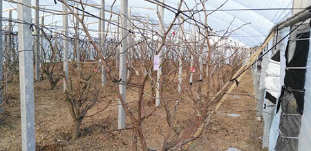 扣棚后,嚴格控制棚內(nèi)溫度,逐漸升溫,適當通風,為提高地溫可覆蓋地膜。中午高溫時,盡量通頂風、不通邊風,萌芽期白天棚內(nèi)最高溫度不宜超過30℃;溫度過高,萌芽抽枝展葉快,但抵抗不良環(huán)境的能力差,若遇極端環(huán)境影響,易造成損傷。