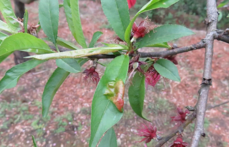 桃樹縮葉病主要為害葉片,嚴(yán)重時(shí)也可以為害新梢和幼果。