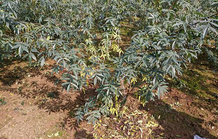 據四川、重慶、貴州等地青花椒種植戶反應,冬季青花椒的黃化落葉非常嚴重。青花椒葉片過早脫落,會導致營養(yǎng)物質積累不足,花芽分化差,直接影響來年的產量;情況嚴重者會導致樹勢衰弱直至死亡。