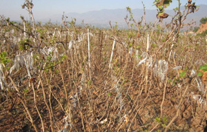 圖1:葉片提早脫落,樹體養(yǎng)分儲(chǔ)存不足,影響花芽繼續(xù)分化